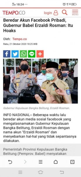 Sumber: nasional.tempo.co/read/1398161/beredar-akun-facebook-pribadi-gubernur-babel-erzaldi-rosman-itu-hoaks?fbclid=IwAR3J3AHu2_JG9M8beQF1mWJ6J4JSDxI_DUR1-BxCjxRpmQRfsYzvLpUopd8