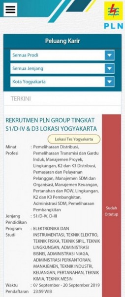 Institusi - Perusahaan DI Yogyakarta Rekrutmen Kerja Oleh PT PLN Yogyakarta pada November 2020