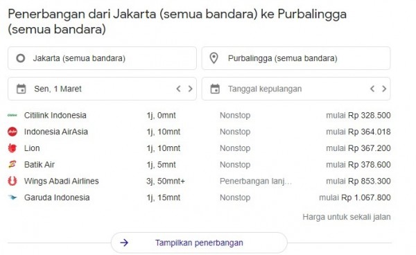 Daftar Maskapai Penerbangan dan Harga Tiket Pesawat ke Purbalingga