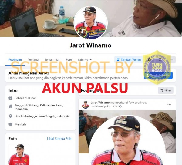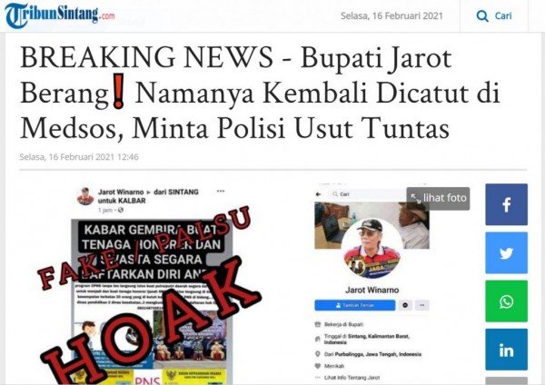 Sumber: turnbackhoax.id/2021/02/18/salah-akun-facebook-bupati-sintang-jarot-winarno/