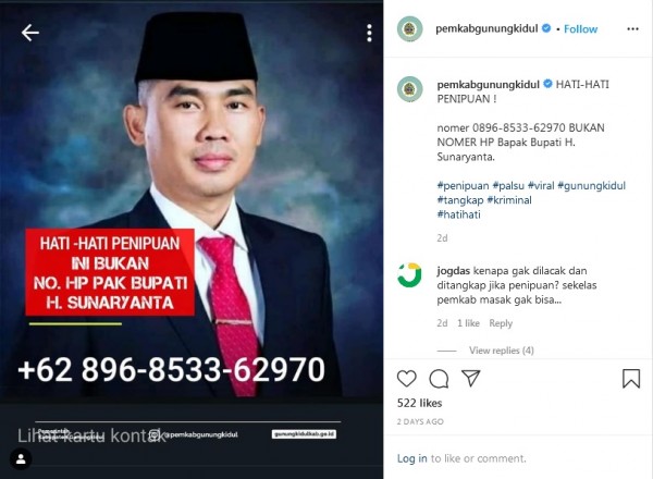 Figur - Pejabat Daerah DI Yogyakarta Akun Whatsapp Mengatasnamakan Bupati Gunung Kidul